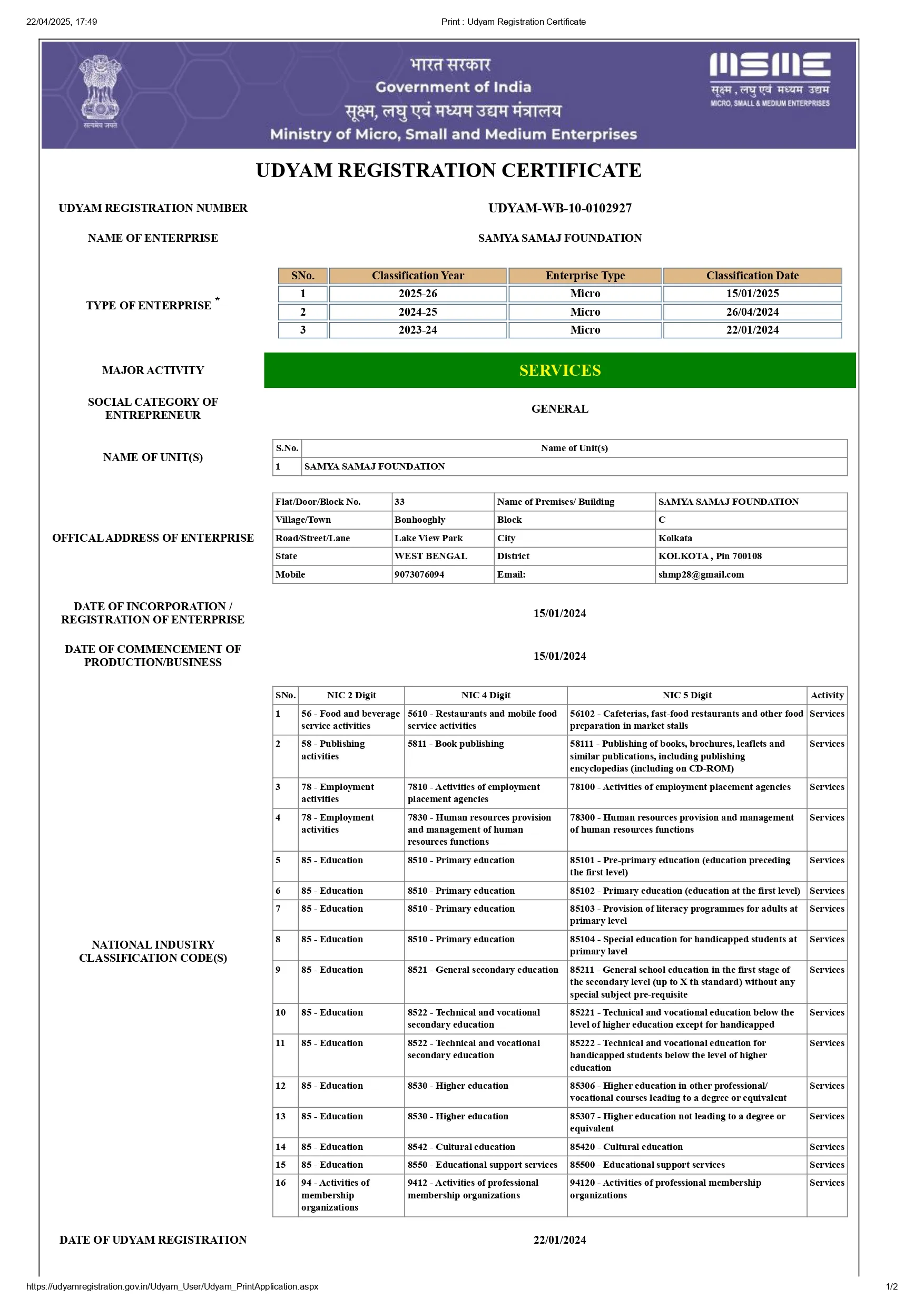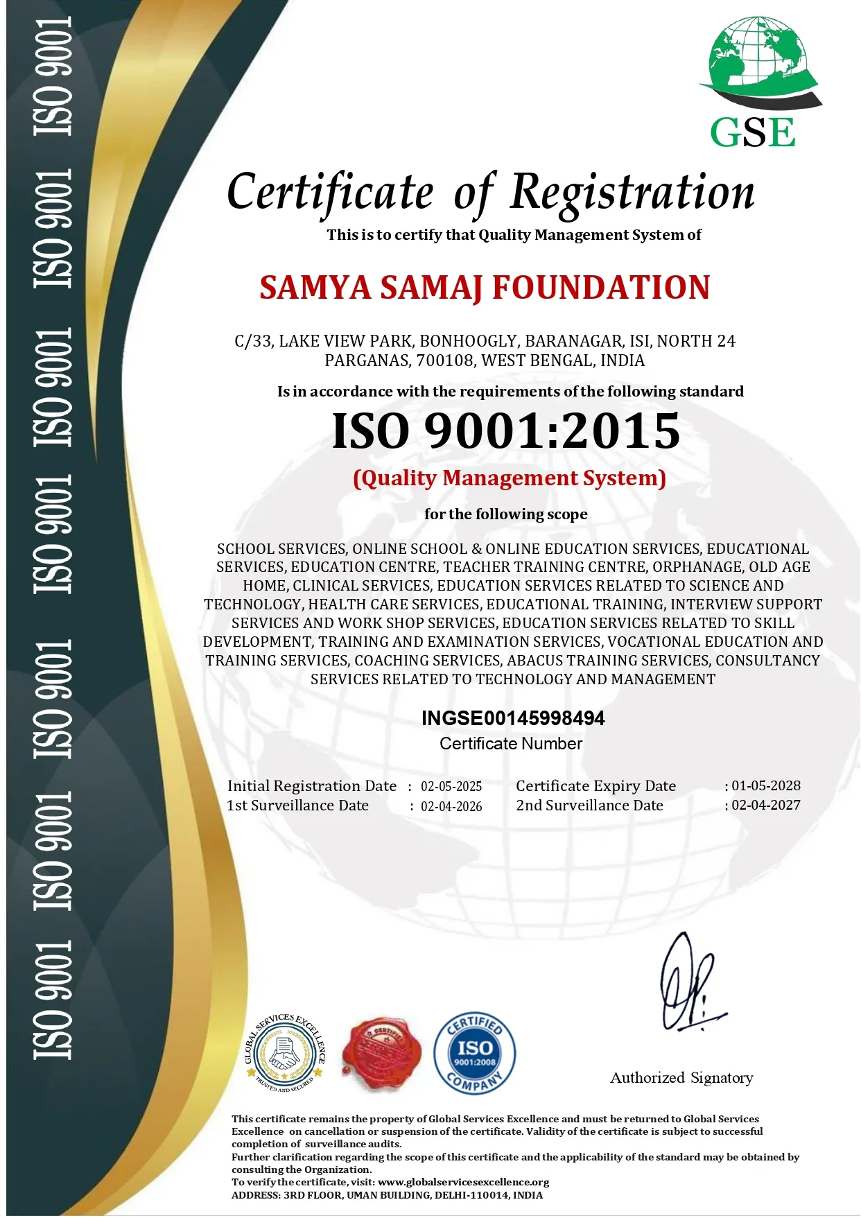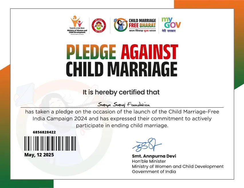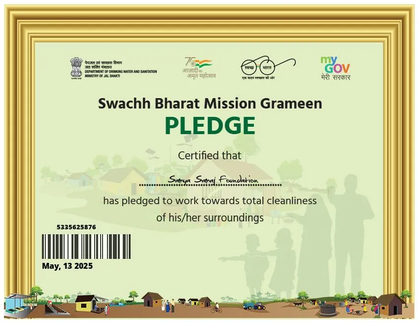 Samya Samaj Foundation is a nationally recognized, ISO 9001:2015 certified and MSME-authorized Non-Profit Public Charitable Trust, operating under the Indian Trust Act 1882 (Deed No.: IV-190200467/2025). We are officially registered with the Government of India through NITI Aayog (ID No: WB/2025/0602329), ensuring full transparency, governance, and accountability in all our charitable operations.